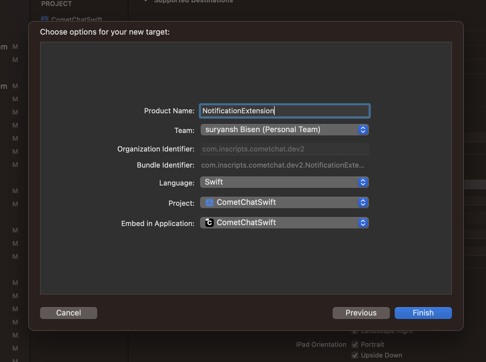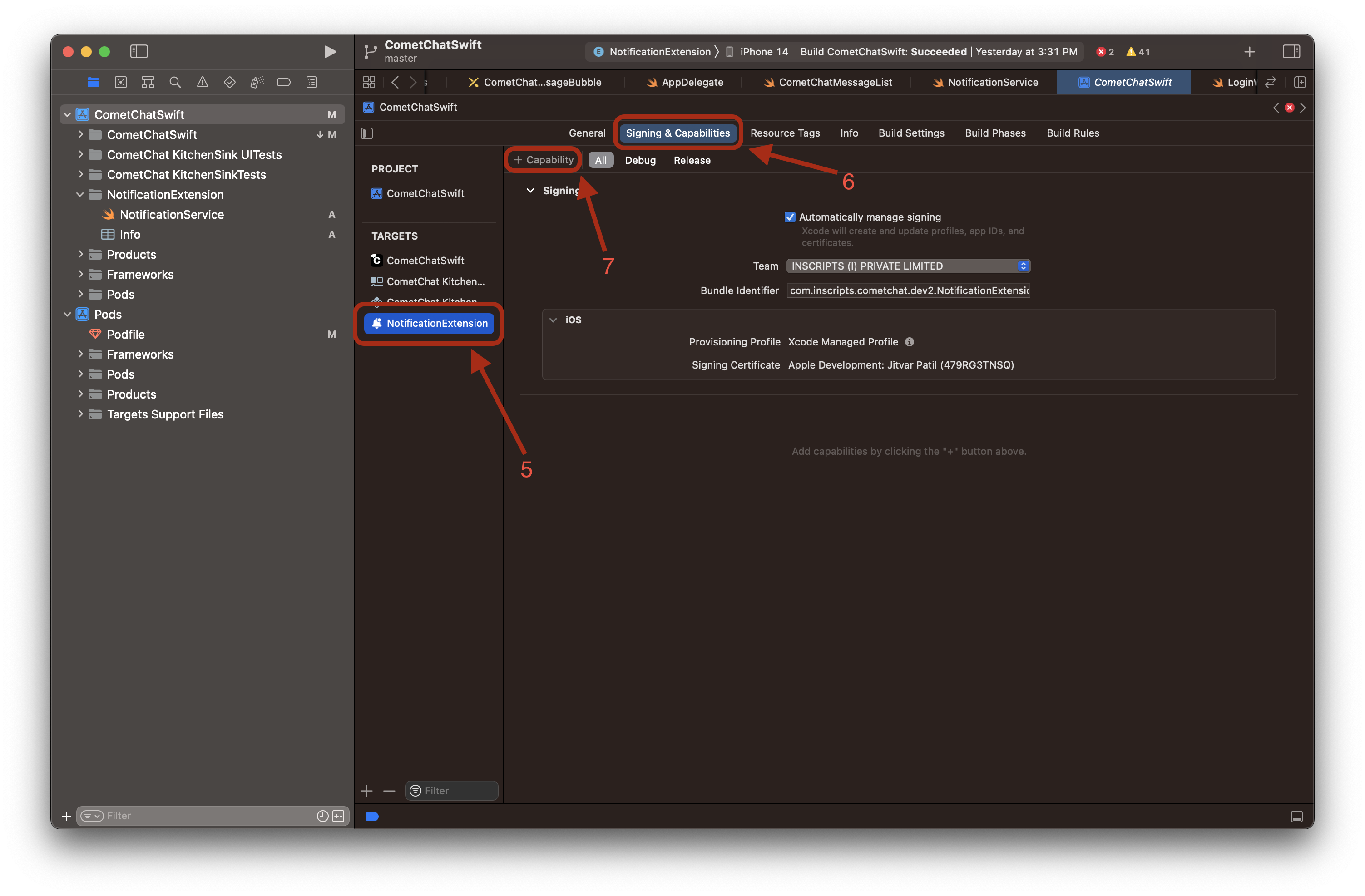 - Lastly, add CometChatSDK in your notification extension target in the pod file.