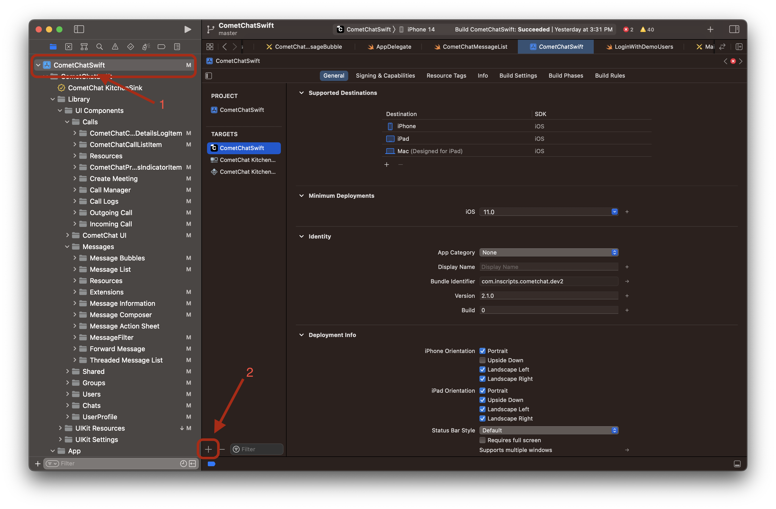 - Your notification service extension is ready now, you can see that in the target list. Now we will create app group for the extension. This app group will be needed to share user default between the main application and notification service extension.