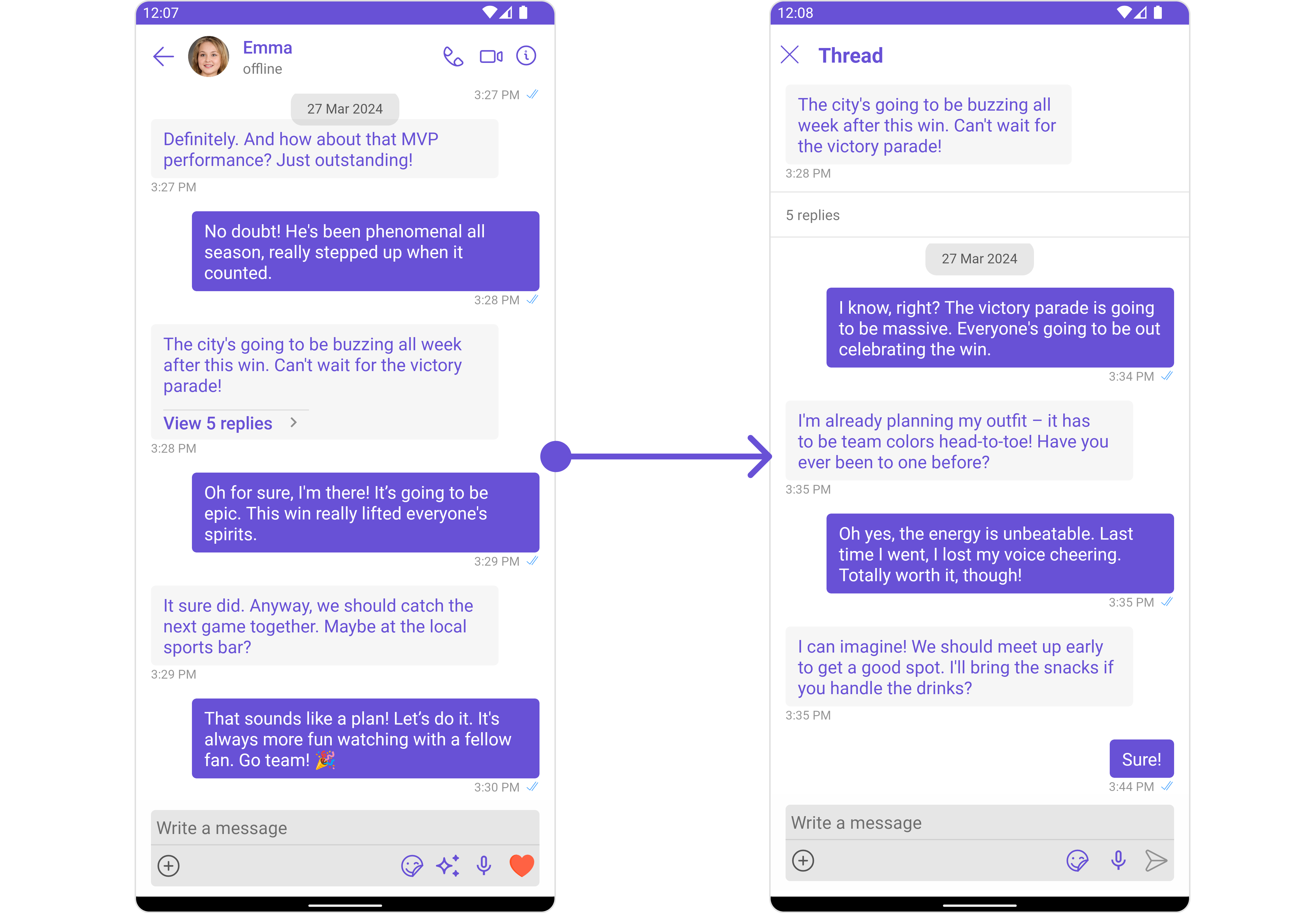 | Threaded Messages | Threaded Messages that displays all replies made to a particular message in a conversation. |