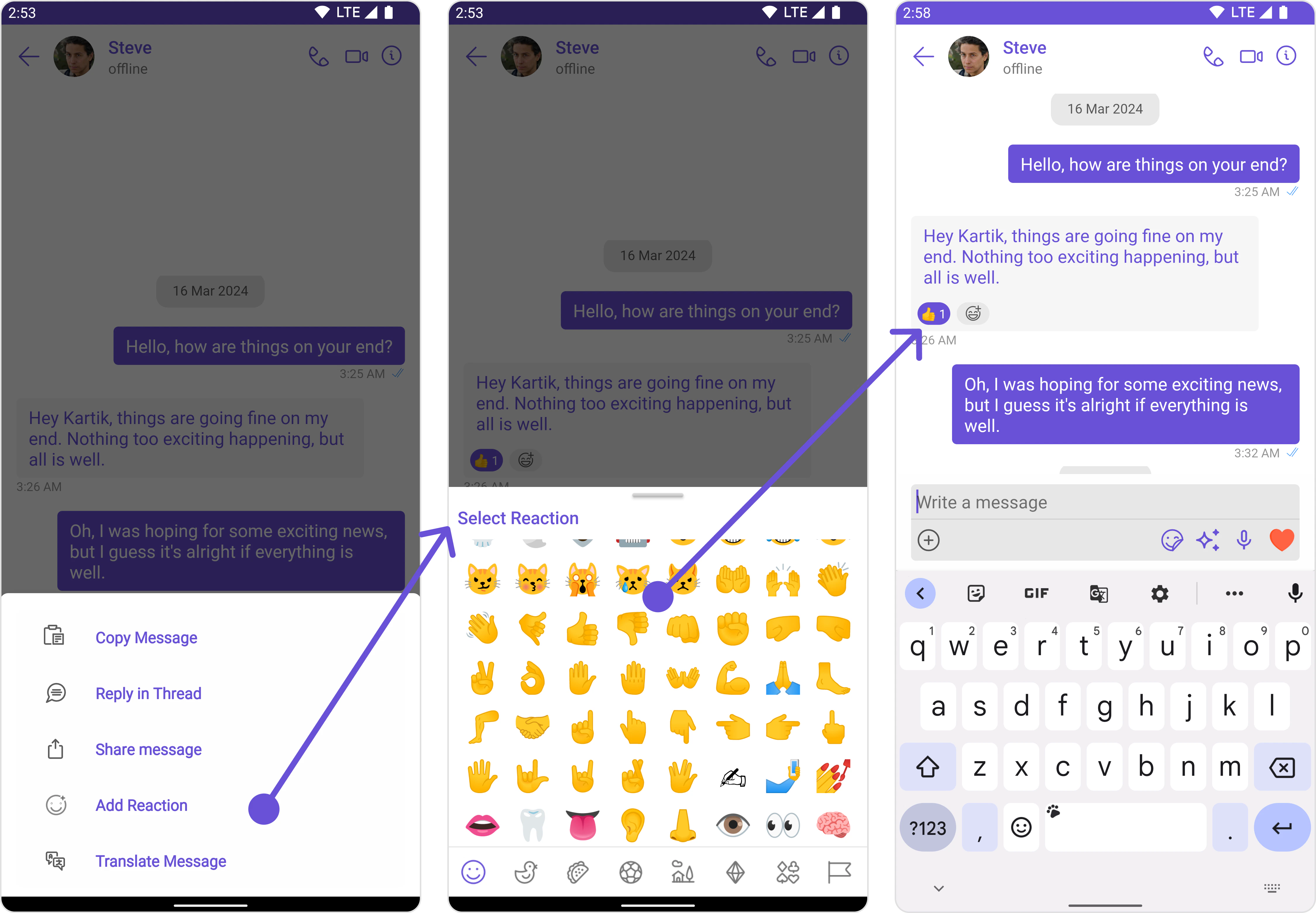 Message Reactions extension lets users express their emotions towards a message by choosing from a range of emojis. It provides a quick way to respond to any shared message. For a comprehensive understanding and guide on implementing and using the Message Reactions Extension, refer to our specific guide on the Message Reactions Extension. Once you have successfully activated the Message Reactions Extension from your CometChat Dashboard, the feature will automatically be incorporated into the Action Sheet of MessageList Component component of UI Kits.