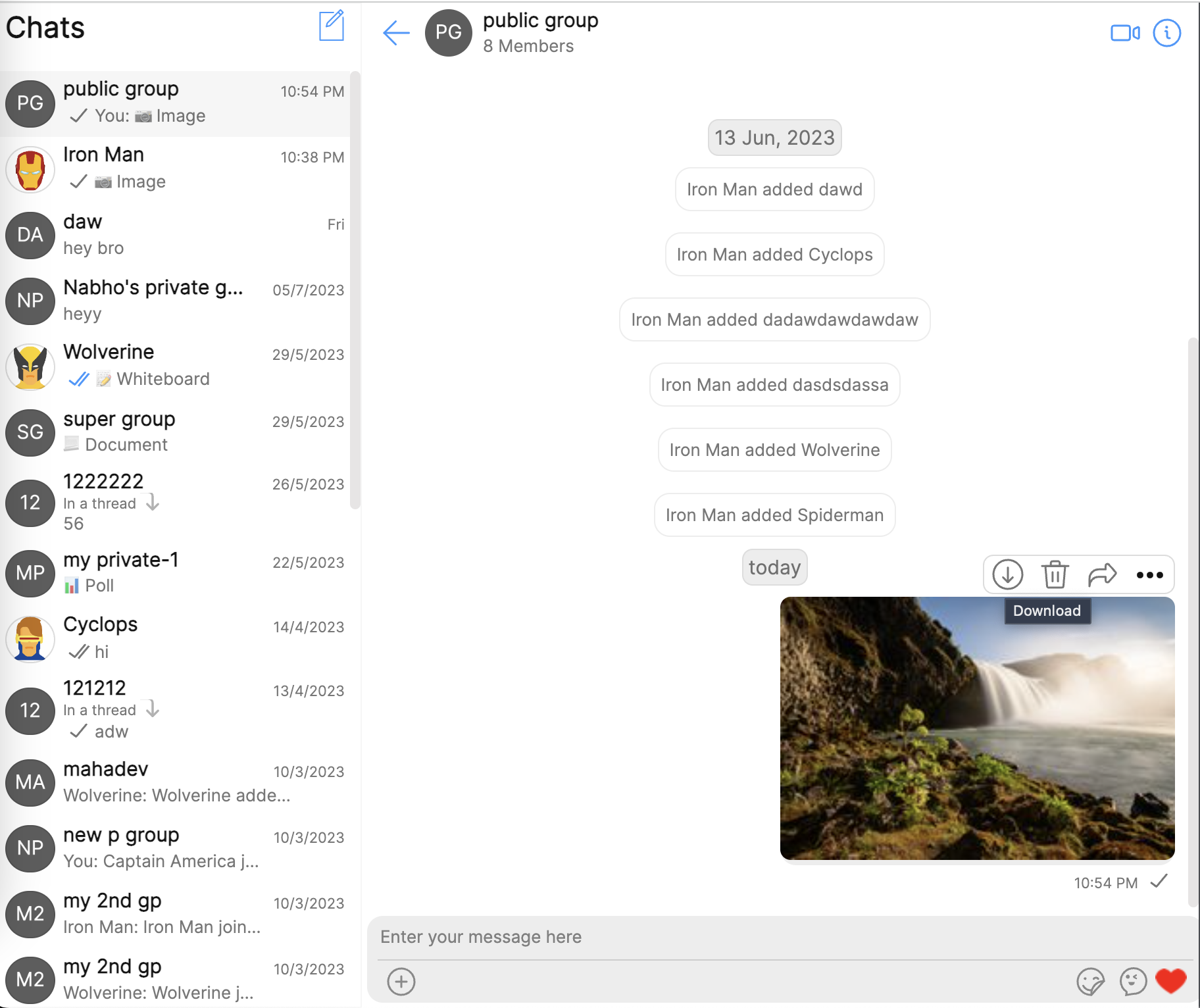The download option is then pushed to the default set of message options for image message supported by the Angular UI Kit. The default options are fetched using the CometChatUIKit class.