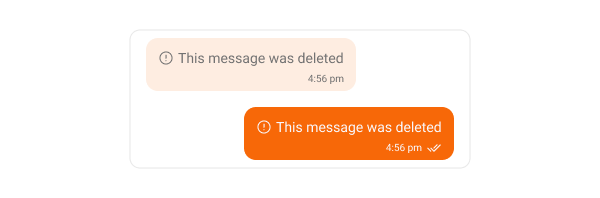 Delete bubbles displays messages that have been deleted by the sender. These indicate the message removal within the chat interface. The following code snippet shows how customize the delete message bubble:- Swift