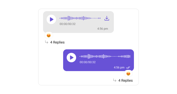 Audio bubbles display Audio messages. The following code snippet shows how customize the Audio message bubble:- Swift