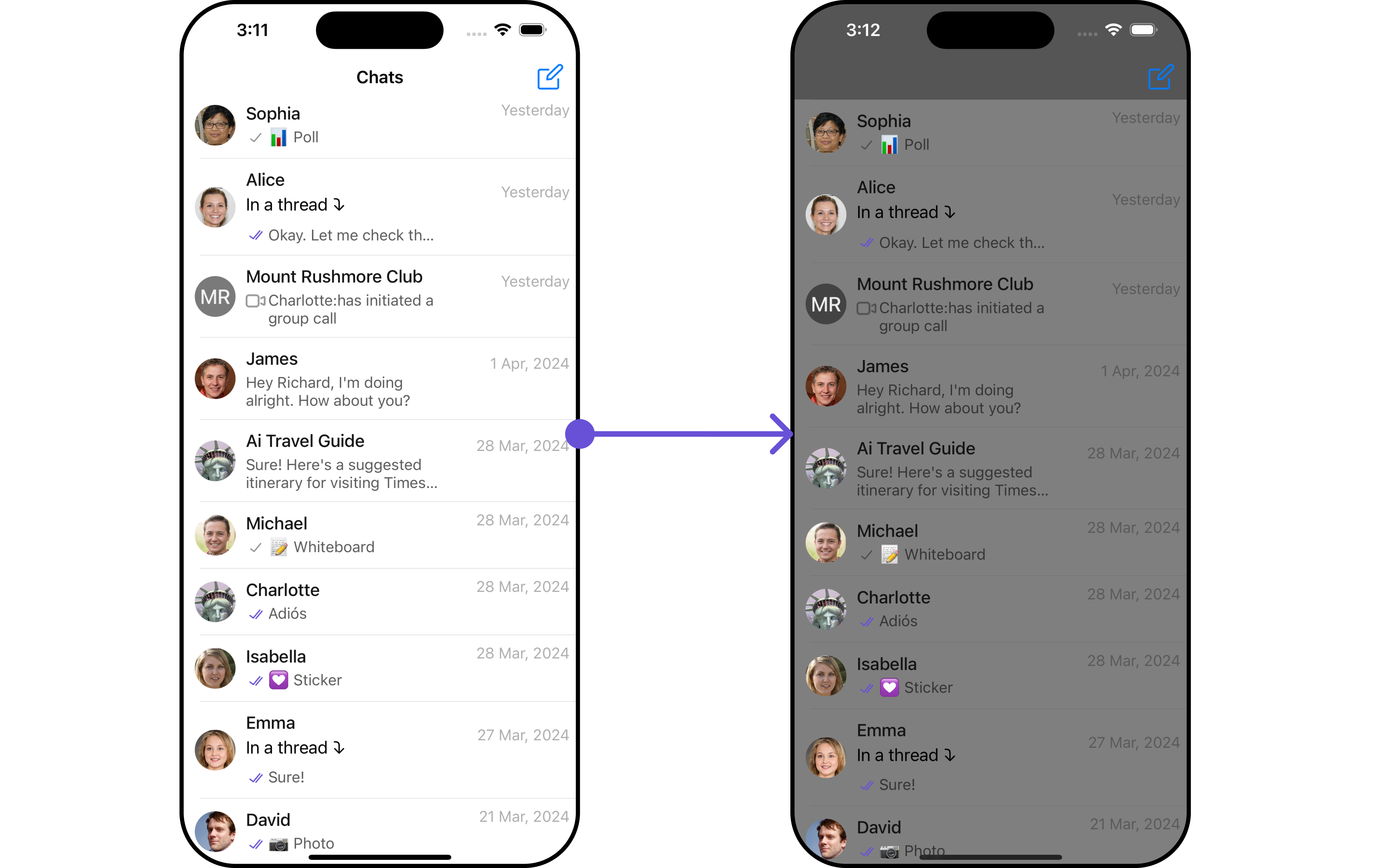 Using Style you can customize the look and feel of the component in your app, These parameters typically control elements such as the color, size, shape, and fonts used within the component. ConversationsWithMessages component doesn’t have its own style parameters. But you can customize its component styles. For more details on individual component styles, you can refer Conversation Styles, Messages Styles, and Contacts Styles Styles can be applied to SubComponents using their respective configurations. Example- Swift