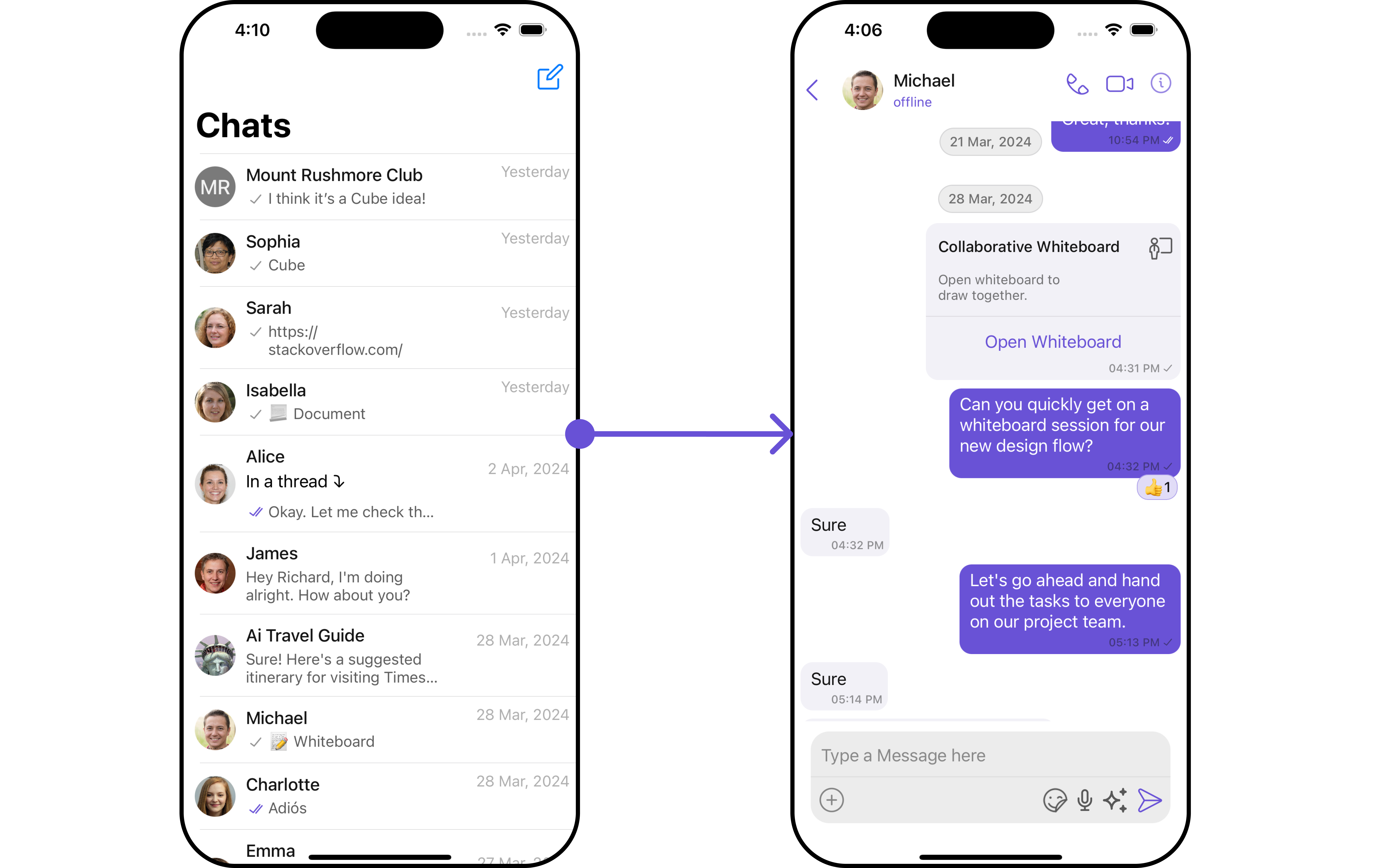 Actions dictate how a component functions. They are divided into two types: Predefined and User-defined. You can override either type, allowing you to tailor the behavior of the component to fit your specific needs. While the ConversationsWithMessages component does not have its actions, its components - Conversation, Messages, and Contacts - each have their own set of actions. The Action of the components can be overridden through the use of the Configurations object of its components. Here is an example code snippet.- Swift