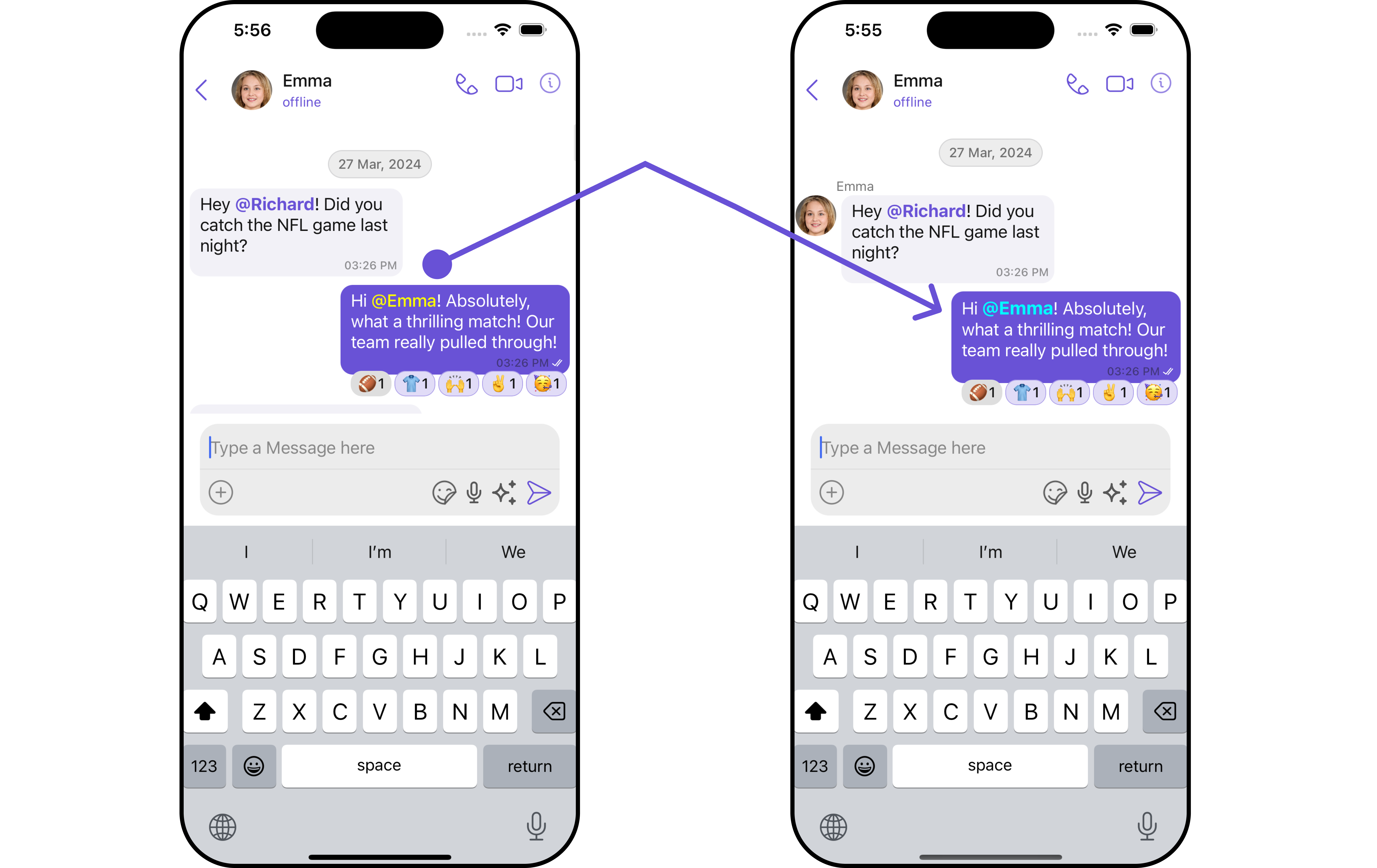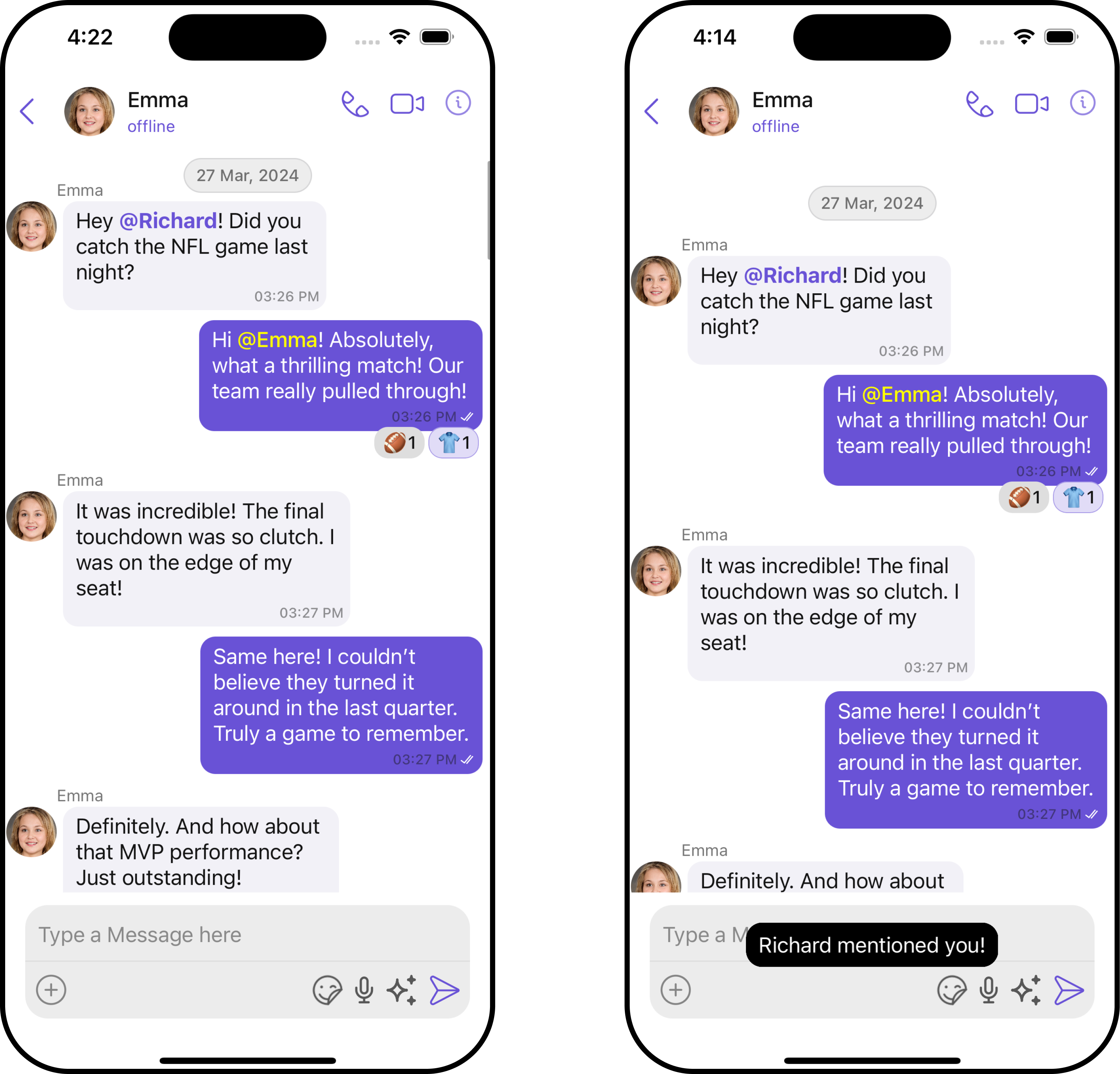 • Mention Formatting: Automatically formats mentions within text messages based on provided styles and settings.