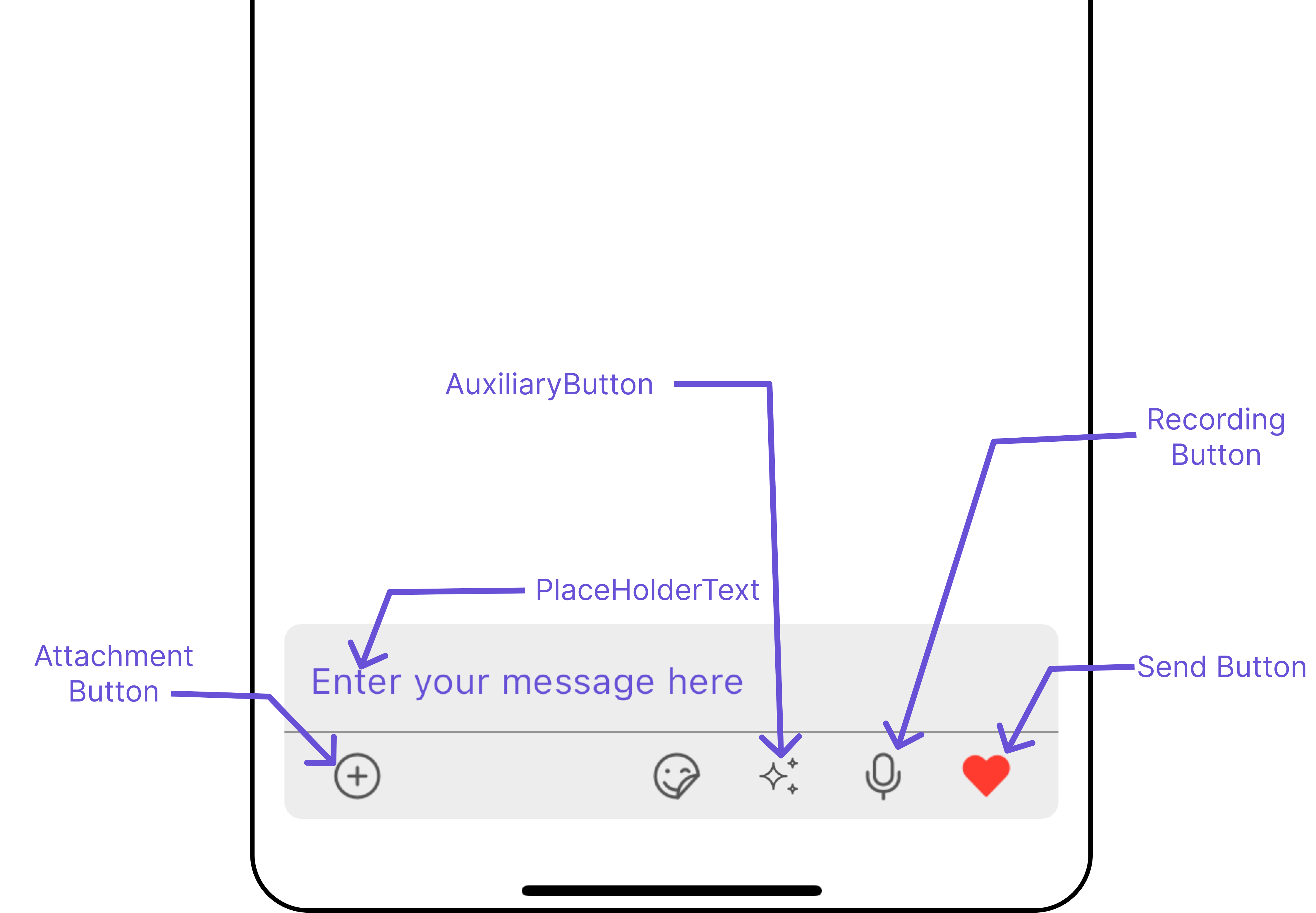 | Set PlaceHolderText | Sets message composer’s placeholder text | .set(placeholderText: String) |
