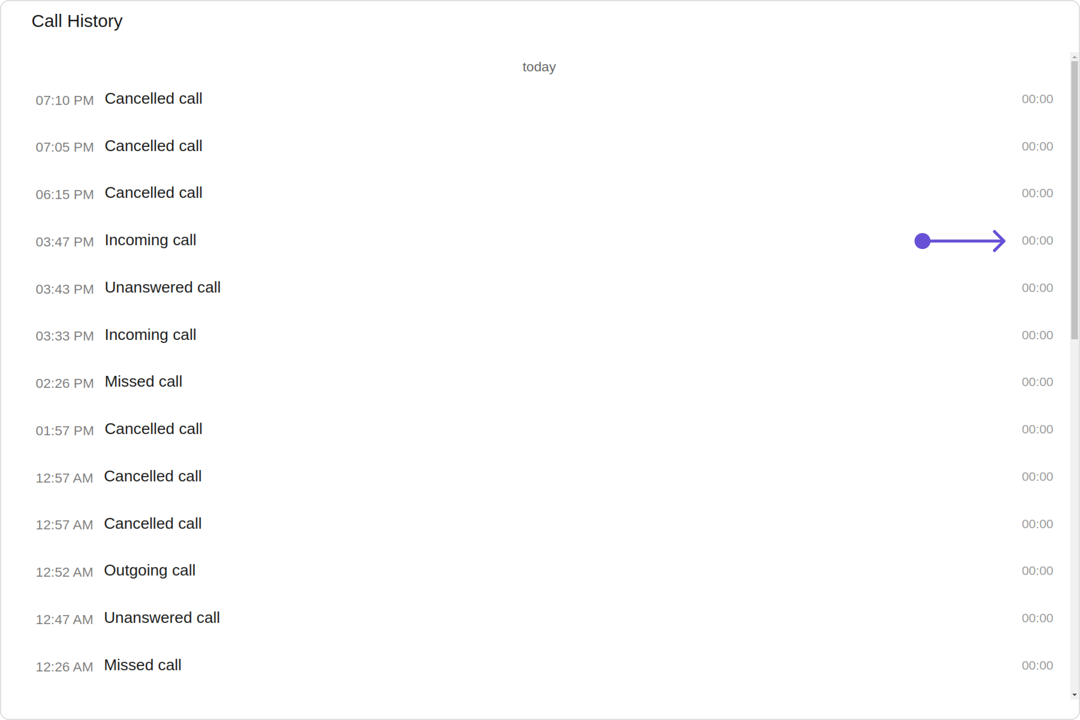 To customize the appearance, you can assign aCallLogHistoryStyle object to the Call Log History component.