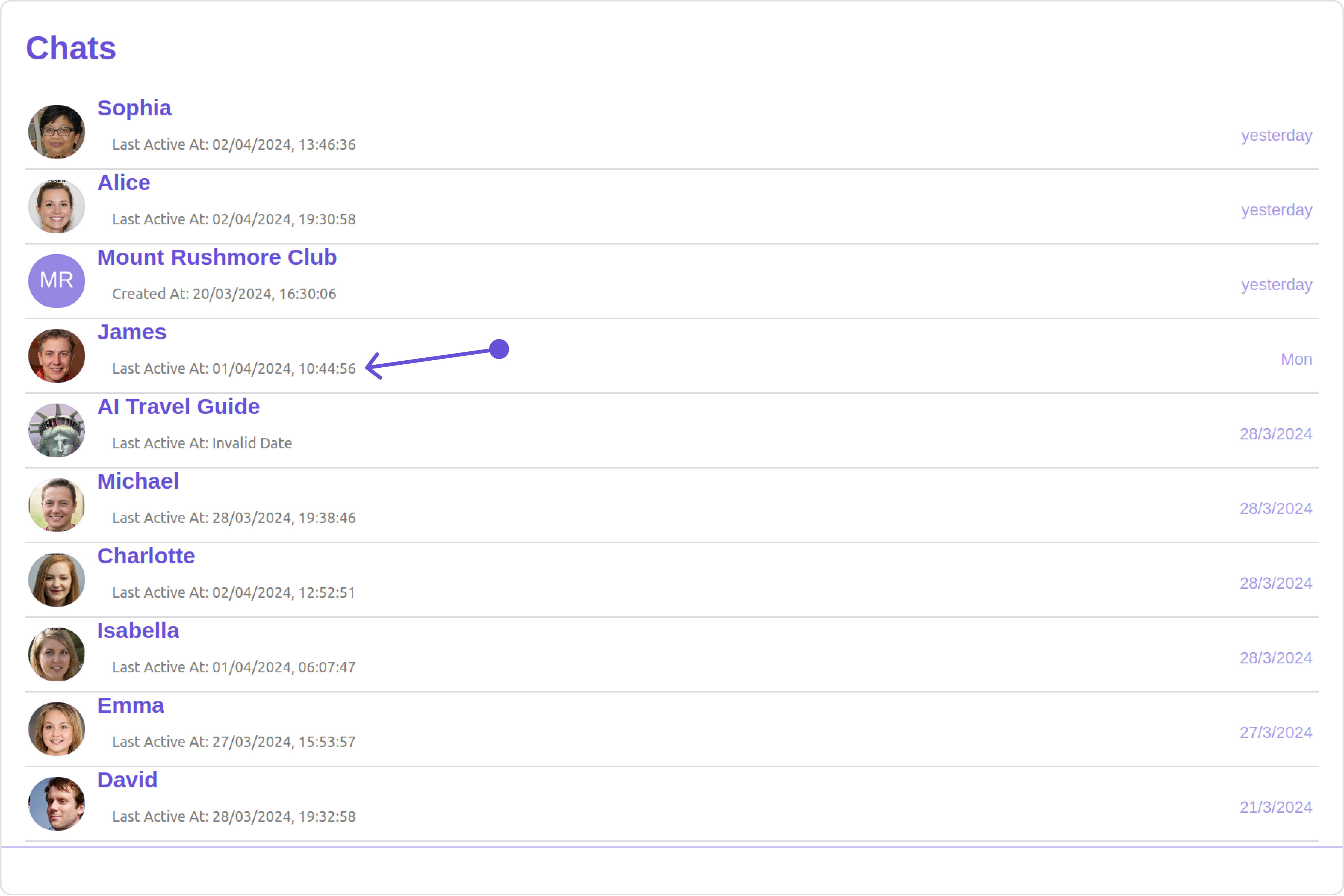 Last Active At: {formatTime(conversationWith.getLastActiveAt())}