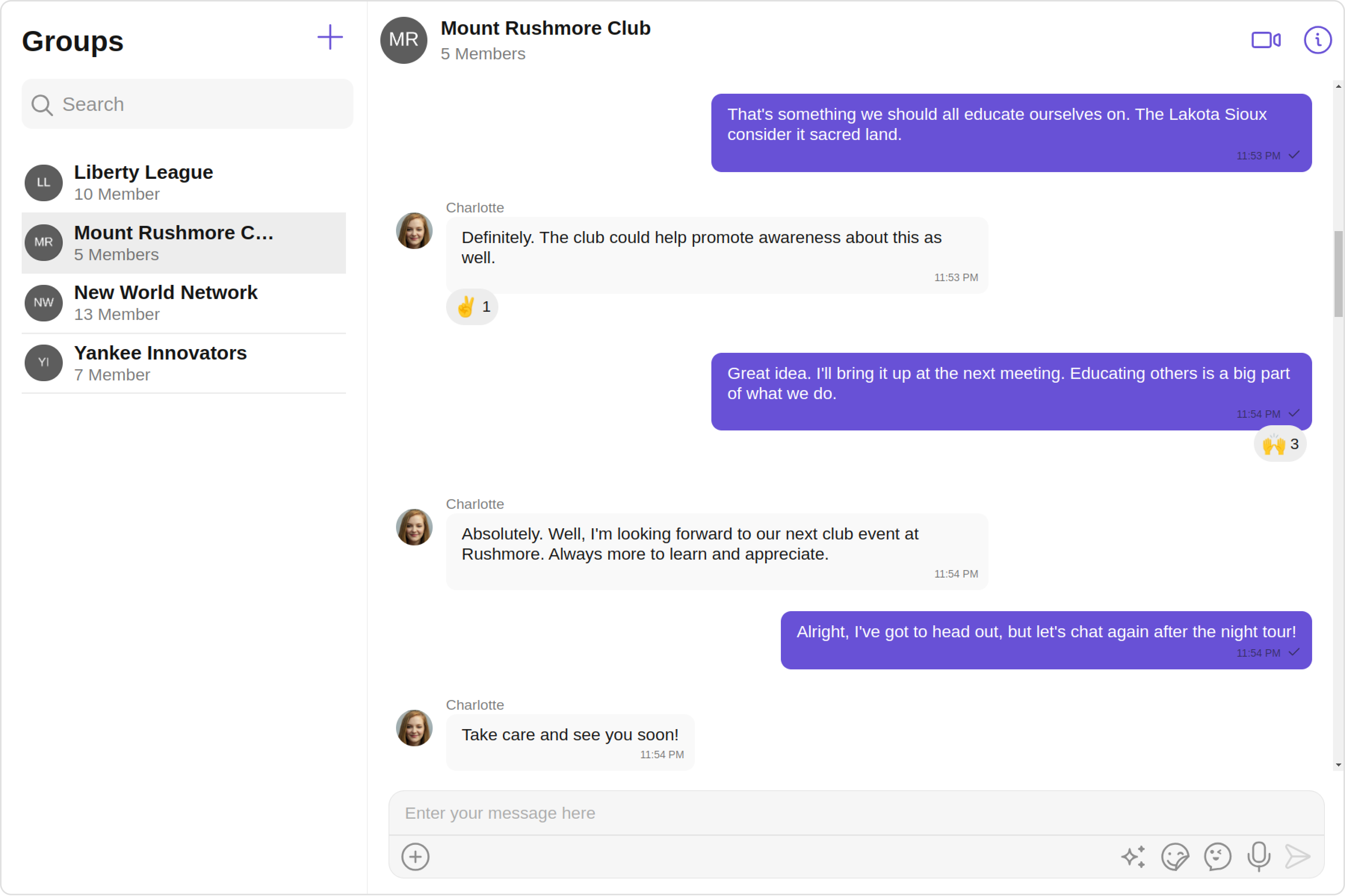 | messageText | It represents the textual content which will be replaced with the messages component when user clicks on a particular group chat. | messageText="Your Custom Message Text" |