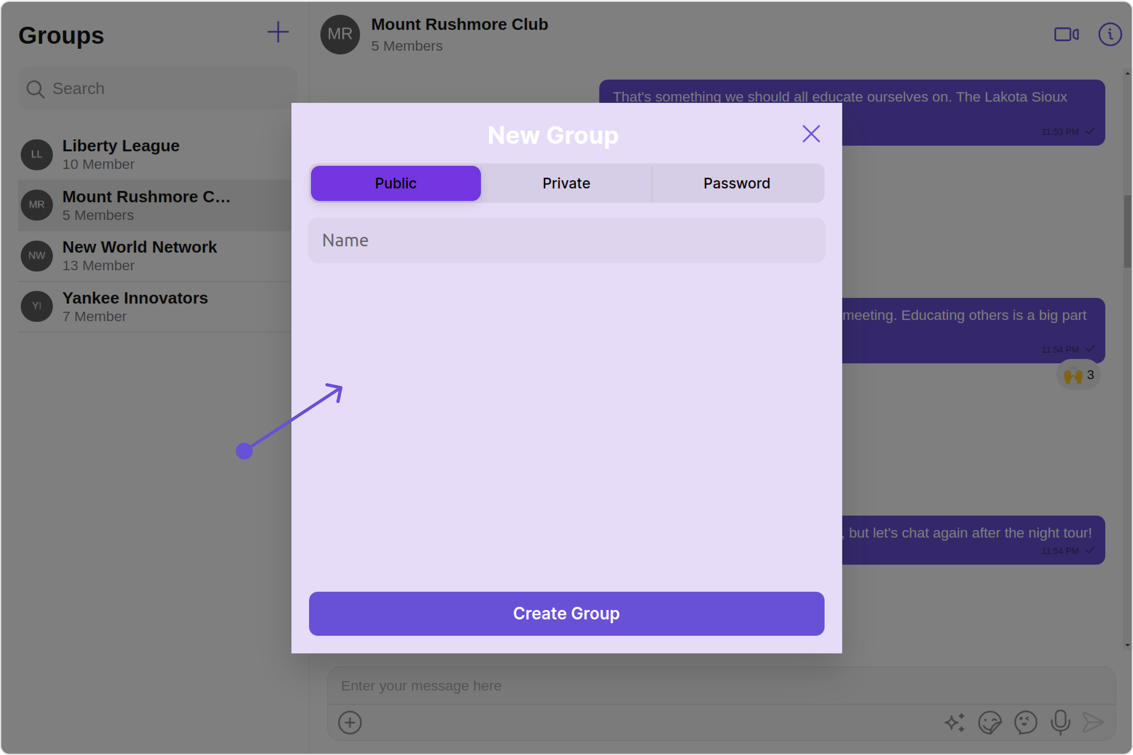 You can customize the properties of the Create Group component by making use of the CreateGroupConfiguration. You can accomplish this by employing thecreateGroupConfiguration props as demonstrated below: