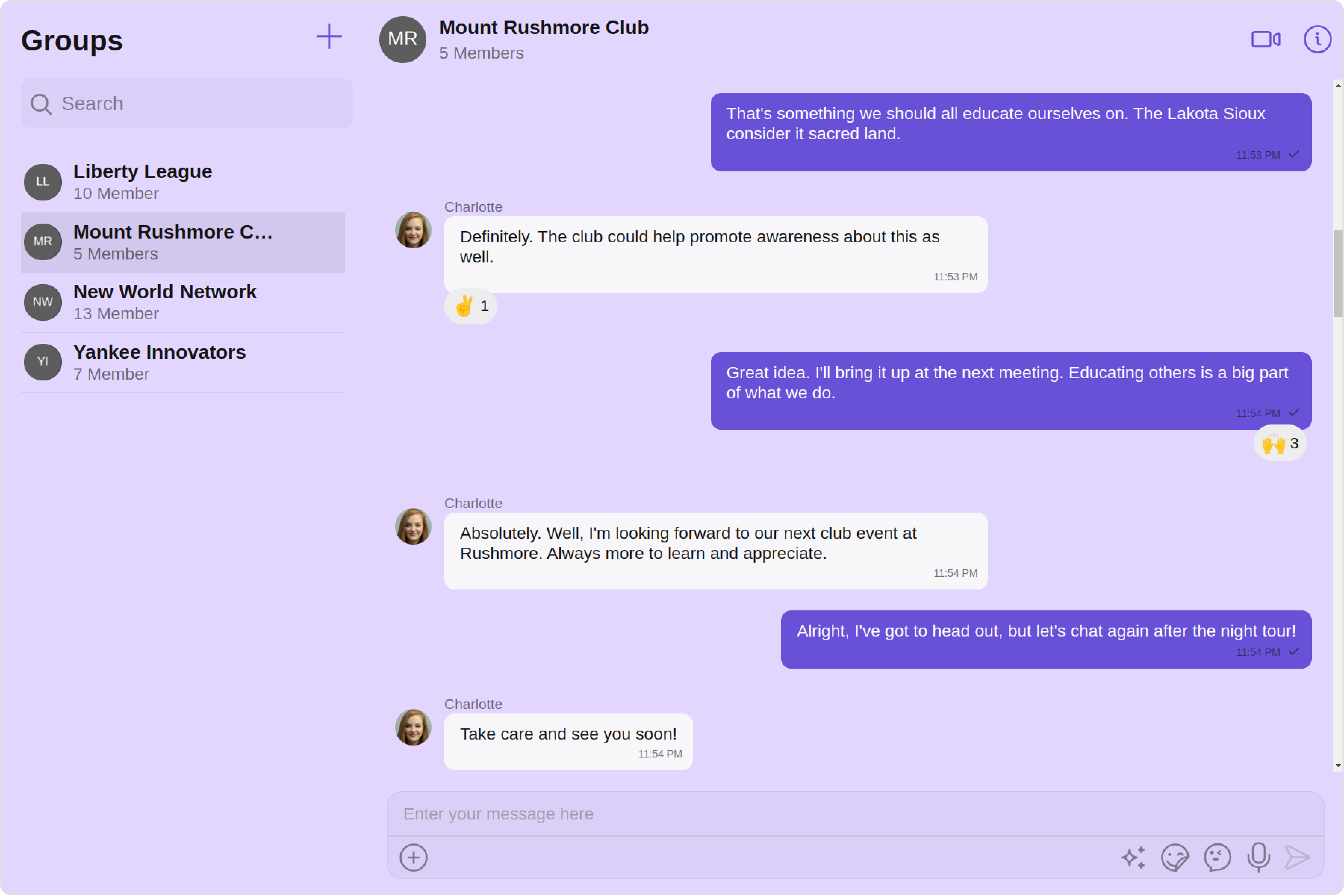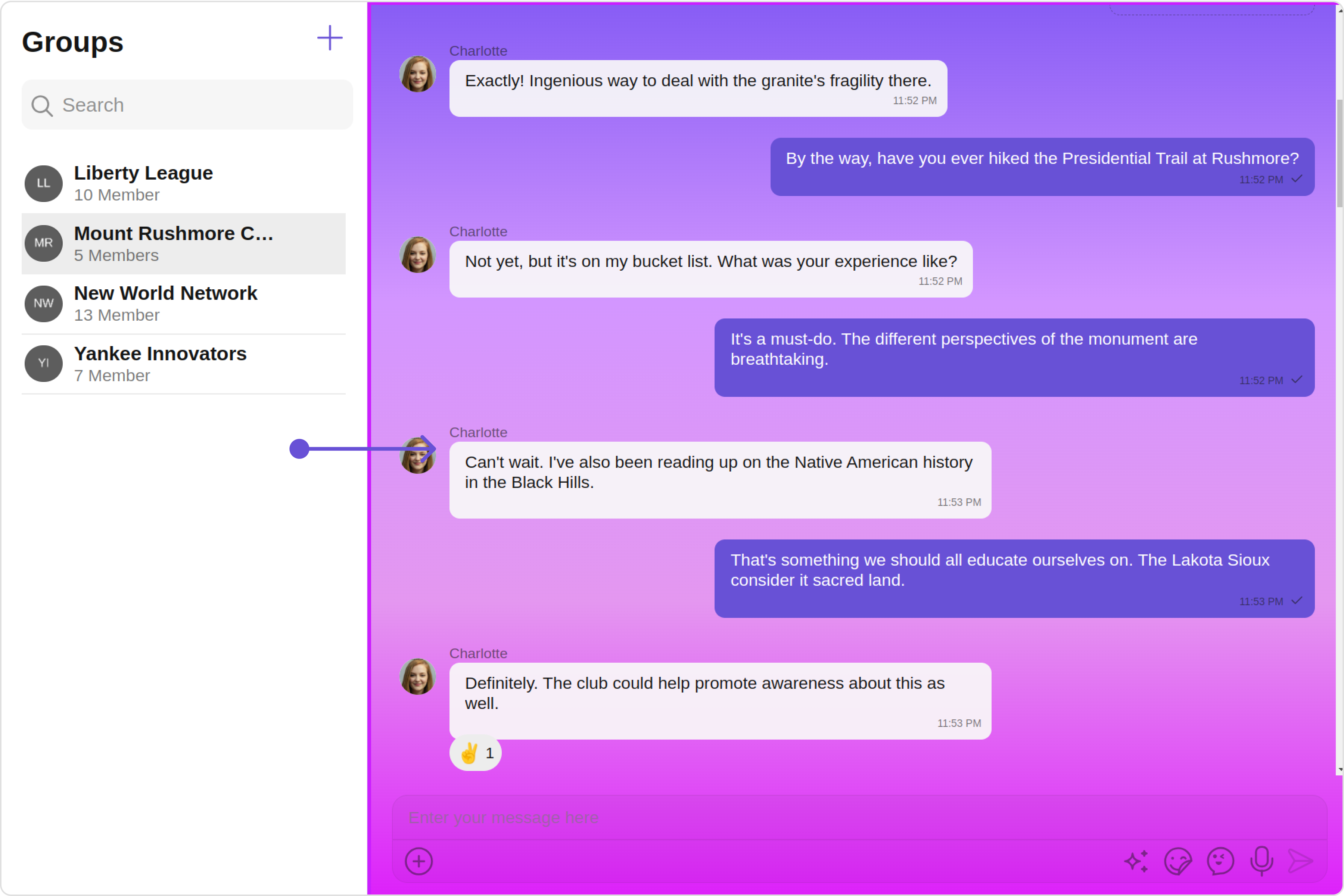 You can also customize its component styles. For more details on individual component styles, you can refer Groups Styles and Messages Styles. Styles can be applied to SubComponents using their respective configurations. Example