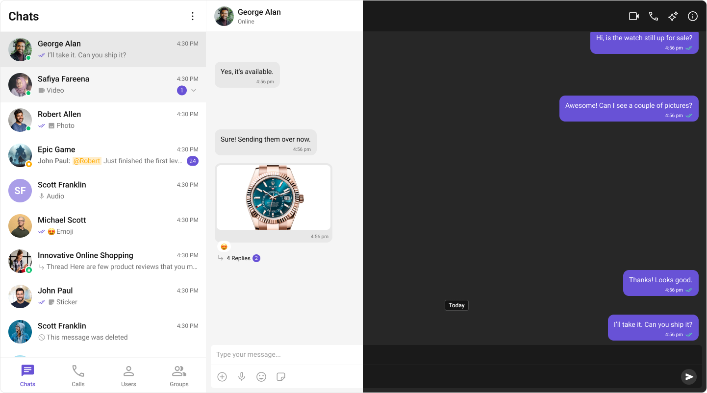 With v5, composite components have been replaced with smaller, modular components, such as Conversations, Message Header, Message List, and Message Composer. This modular approach makes integration more flexible and easier to understand. Each component has a well-defined purpose, allowing developers to use them in ways that suit their specific requirements. The need for complex configurations has been eliminated, as developers can now customize behavior and styling directly via props or CSS. Styling has been significantly simplified, with every component carefully assigned thoughtful CSS class names, enabling developers to customize styles globally or at the component level effortlessly. To support the transition from v4 to v5, CometChat has built a sample app that replicates the functionality of v4’s composite components. This sample app serves as a reference for developers looking to build additional features such as user/group details, call log details, threaded messages, and advanced messaging capabilities. By following this approach, developers can take full advantage of v5’s modular design while implementing complex functionality in an organized manner.